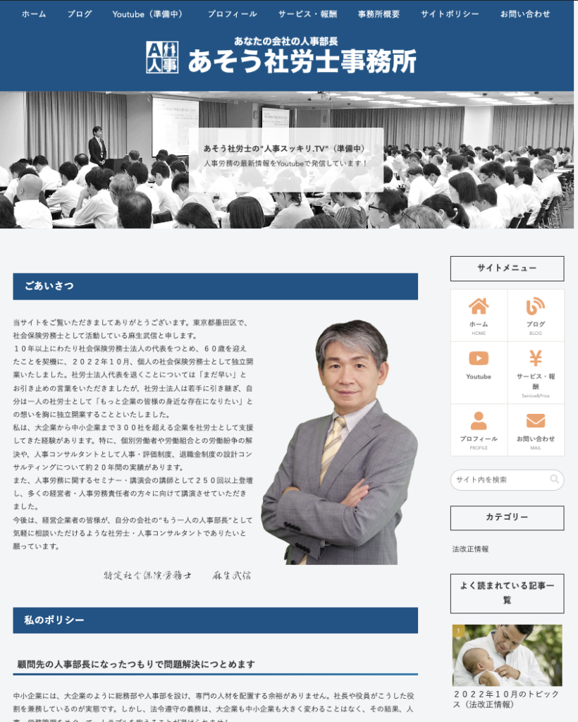 特に目新しいこともありませんが、私のこれまでの実績や、社会保険労務士としてのスタンスをご理解いただけるように書いてみました。